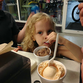 After dinner was done, we decided to make one more vacation based decision and head out to a local ice cream shop called Moo Cow. I had salted caramel, the kids had various chocolate or vanilla and the husband had the WINNER which was a peach. His was absolute best. My son ordered a blue drink also, which made me love him because I LOVE BLUE DRINKS. I have a whole pinterest board dedicated to blue drinks, if that tells you how much I love them.